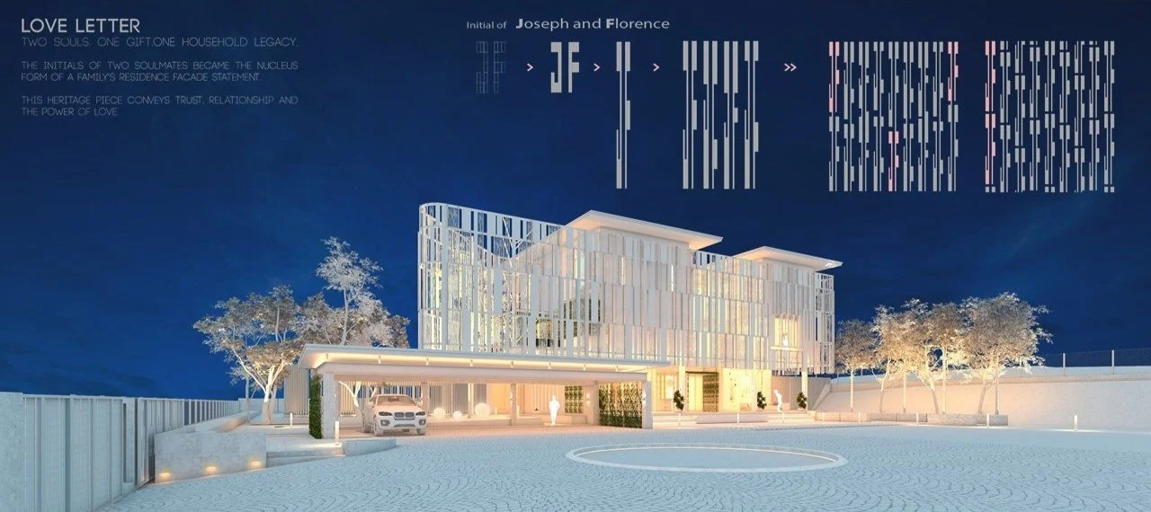The heartbeat of JF Residence lies in the owners’ monogram, elegantly integrated into the screen enveloping the upper floors of the building. Through the screen, a mesmerising interplay of light and shadow unveils a ballad of love and personal connection.